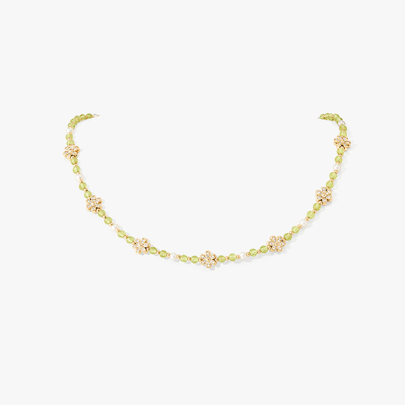 Daisy Yellow Crystal Beaded Necklace