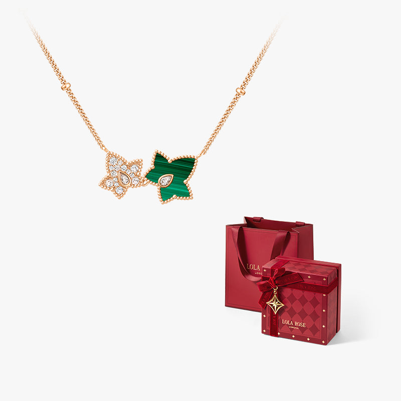Malachite Bead Necklace, 2-leaf motif in Special Limited Edition Box