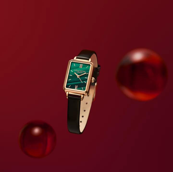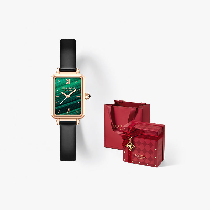 Indulge in the allure of the renowned Ms Lola collection from Lola Rose, where this exquisite timepiece takes centre stage. Featuring the iconic octagonal square watch case and a mesmerising malachite texture dial, it is perfectly complemented by a luxuriously comfortable black leather strap. Adorned with Lola Rose's signature geometric elements, this piece exudes a captivating blend of retro charm and contemporary fashion.
