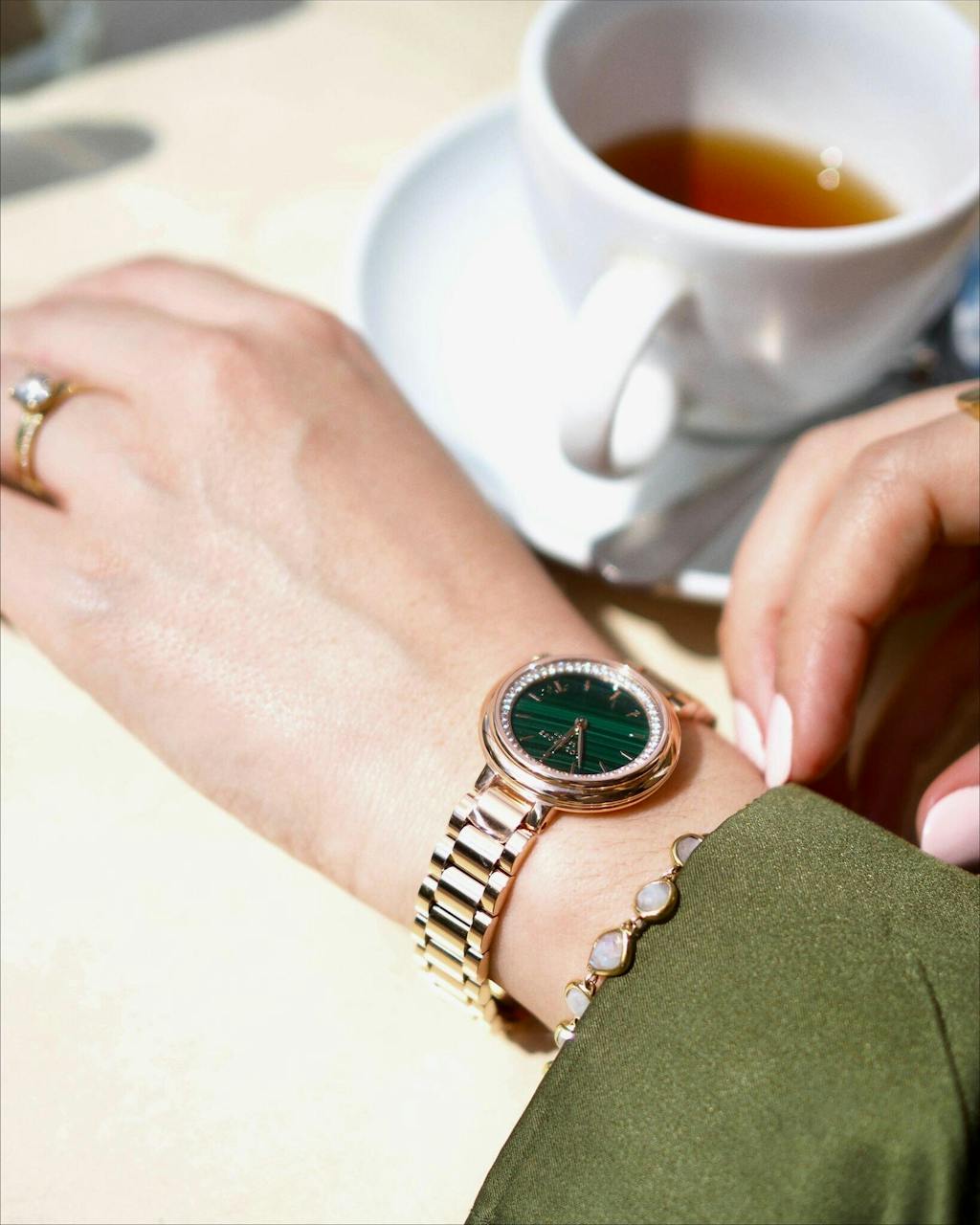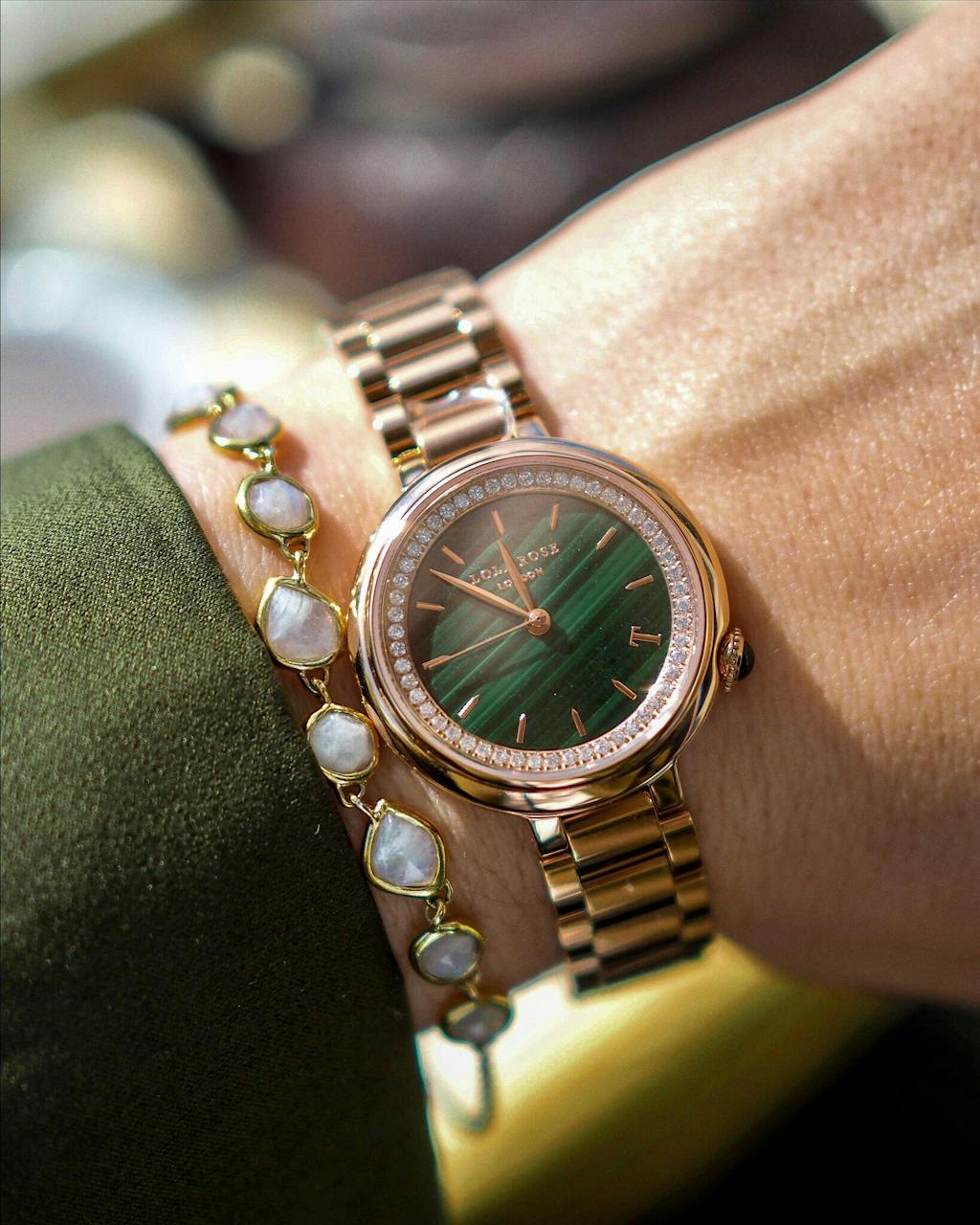 Malachite Watch With Rose Gold