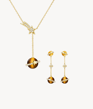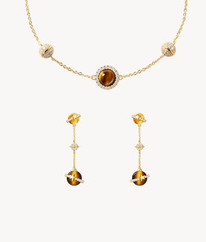 Heliocentric Freshwater Pearl & Tiger's Eye Necklace Gift Set