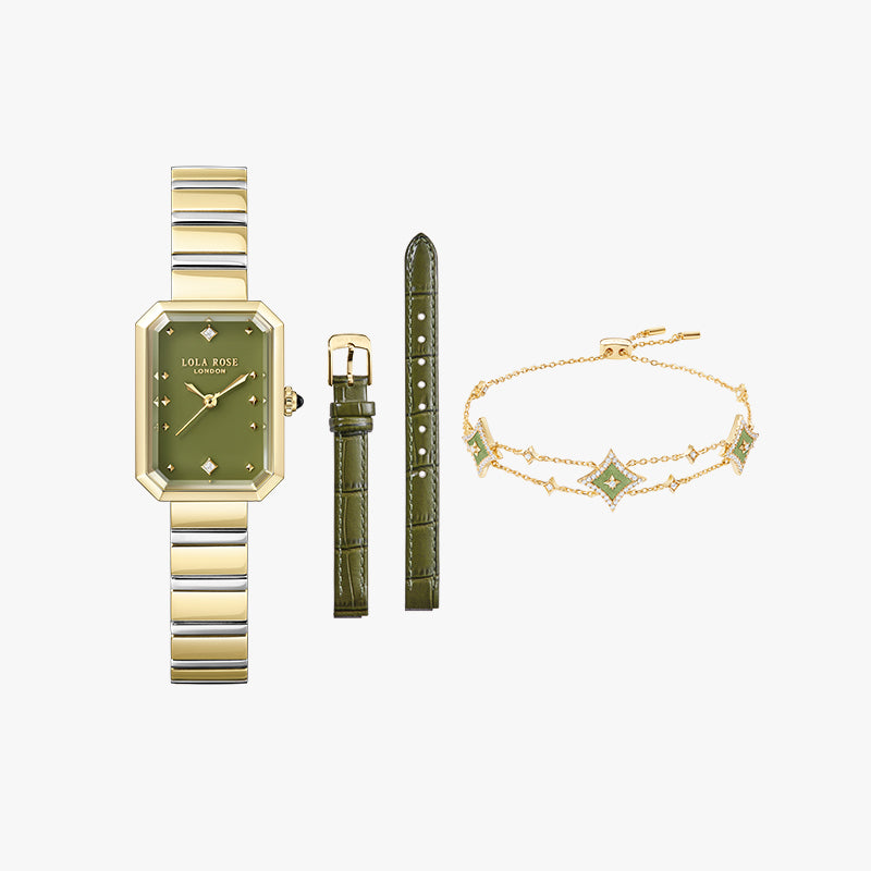 New Ms. Lola Green Onyx Watch With Two Strap Set & Bracelet Gift Set