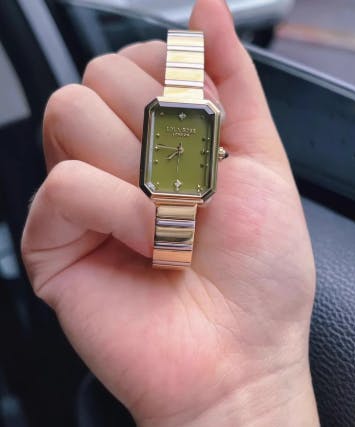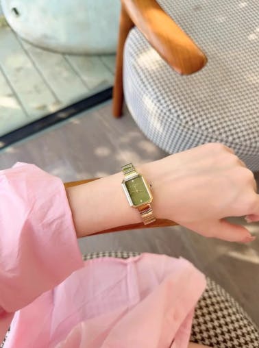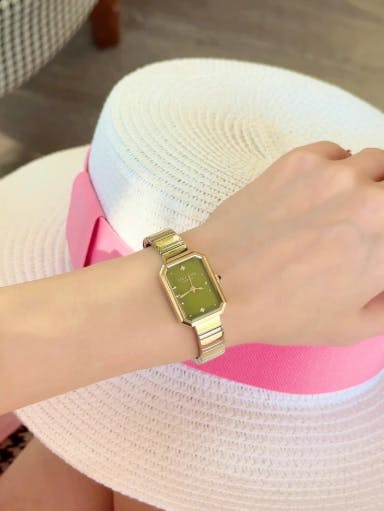 Inspired by the timeless allure of an "octagonal jewellery box," the dial design is a study in sleek elegance, exuding a singular individuality that captures the essence of its wearer. The gold bracelet, with its chic and minimalist aesthetic, wraps the wrist like a whispered promise, perfectly complementing the natural gemstone. This exquisite fusion of vintage charm and contemporary flair invites you to embrace a world where time is not just measured but experienced, a world where every glance at your wrist evokes a sense of wonder and possibility.