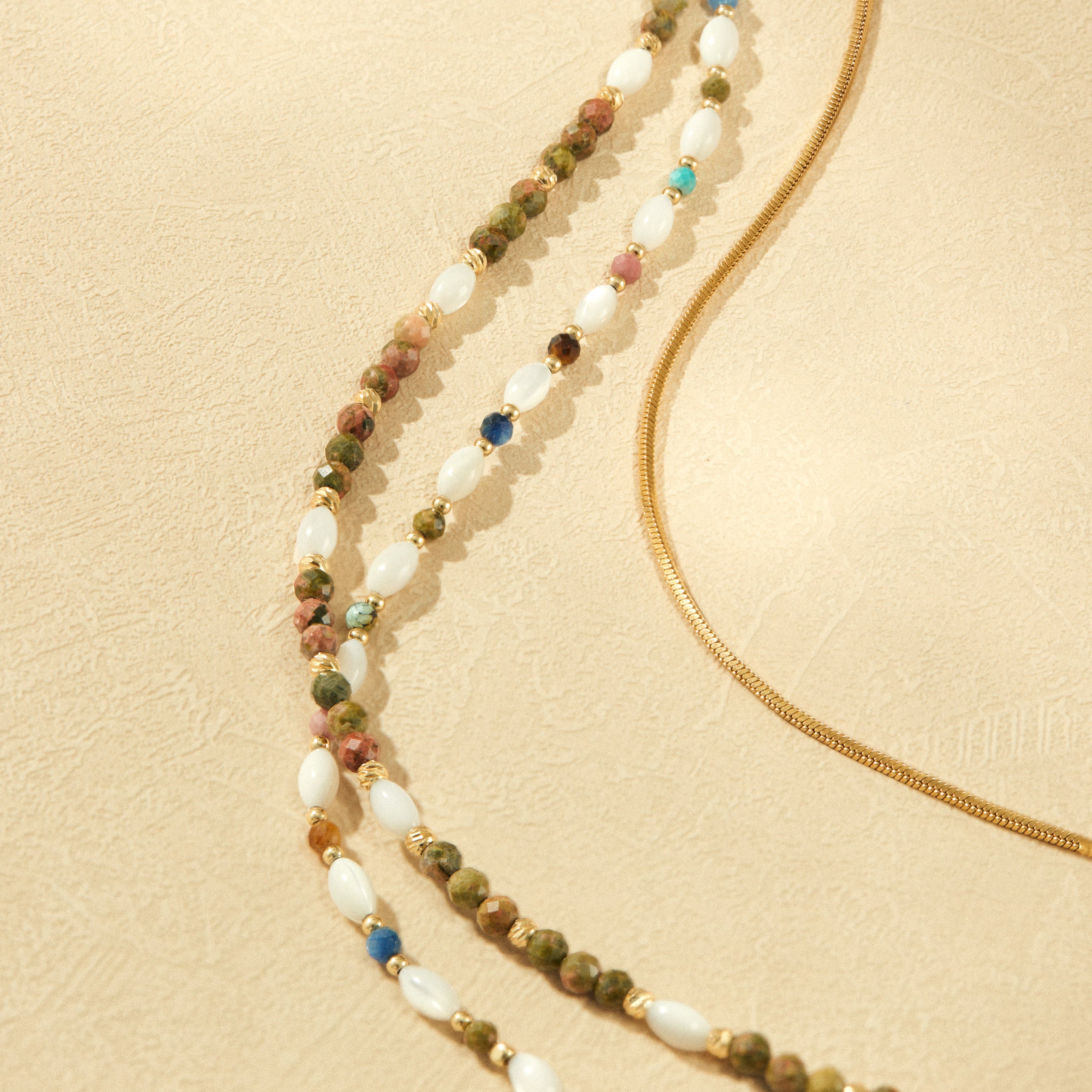 - Gemstone: Variegated Green Stone & Mother of pearl