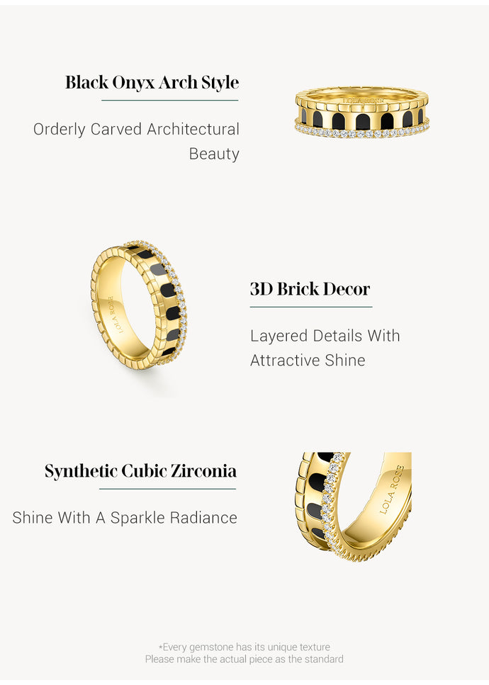 The Arch collection draws on Buckingham Palace Arch's classical and romantic features to reinterpret the architectural emblem and witness your victorious moment with an everyday piece by your side. The unique shape features classy black onyx that perfectly complements the geometric lines of the golden arch. Now you can proudly wear this chic emblem to celebrate your every single achievement.