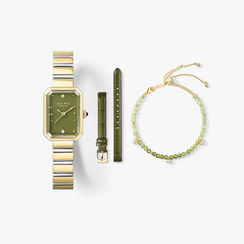 New Ms. Lola Green Onyx Watch With Two Strap Set & Heliocentric Bracelet Gift Set