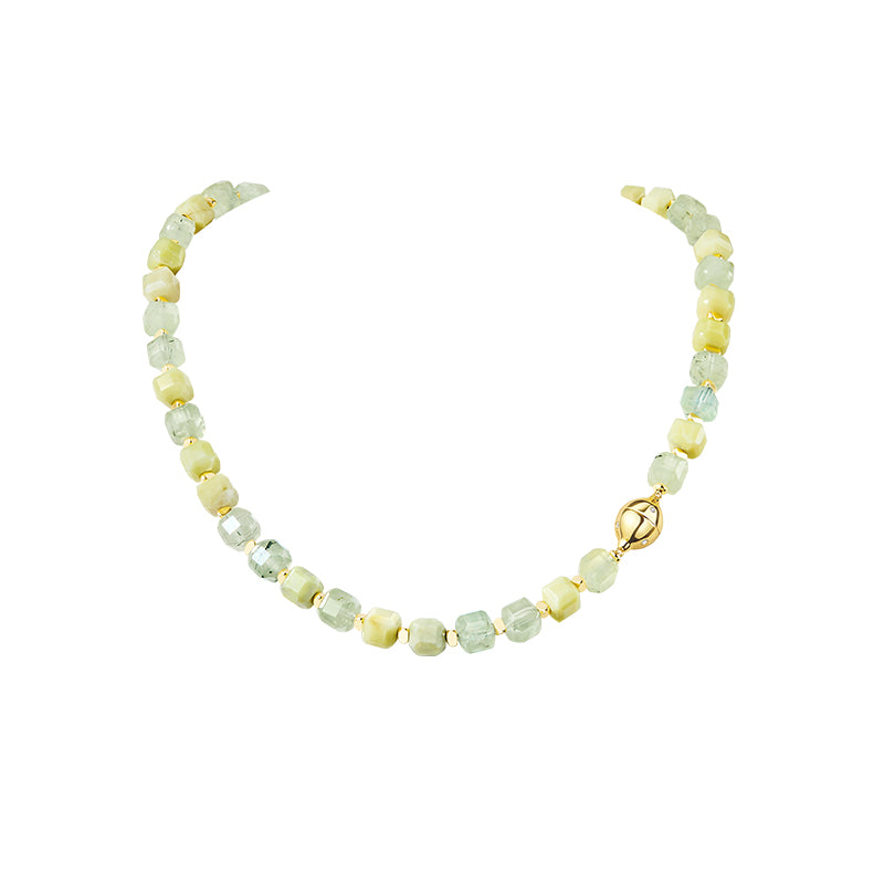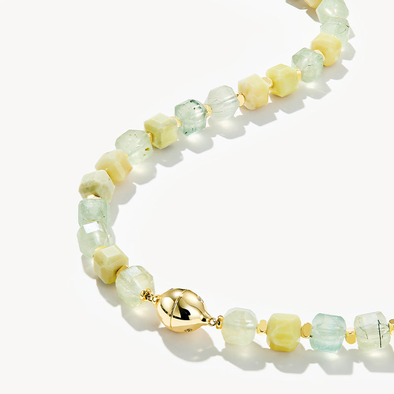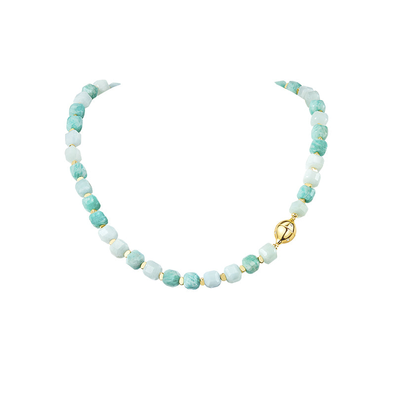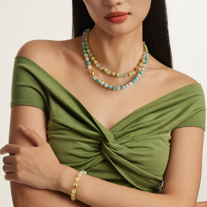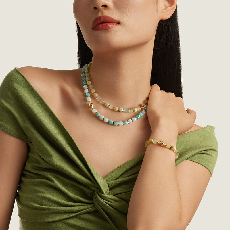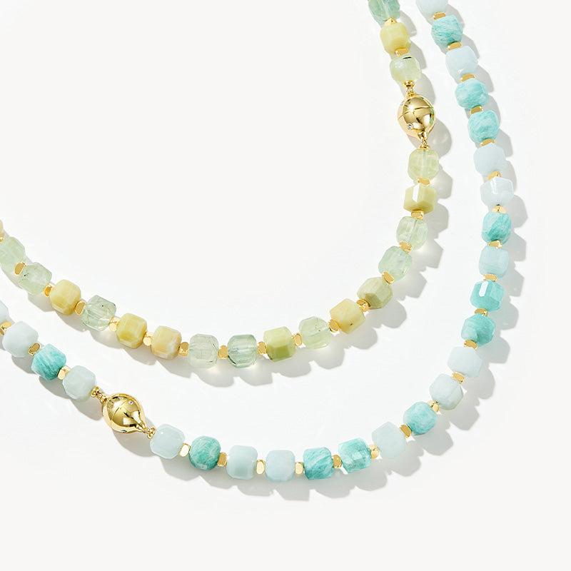 - Gemstone: Prehnite & Serpentine / Aquamarine & Amazonite with Cubic Zirconia