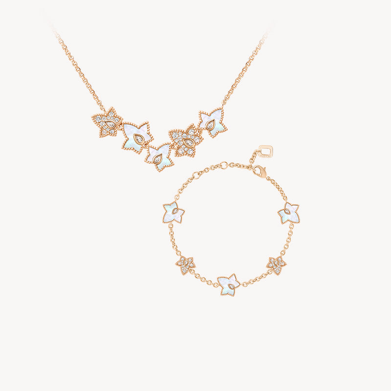 The Ivy Collection, steeped in the rich heritage of classic British style, draws its inspiration from the timeless elegance of ivy adorning grand British manors. This exquisite necklace, with its poetic and vivid ivy leaf design, beautifully complements the refined grace of the modern woman.