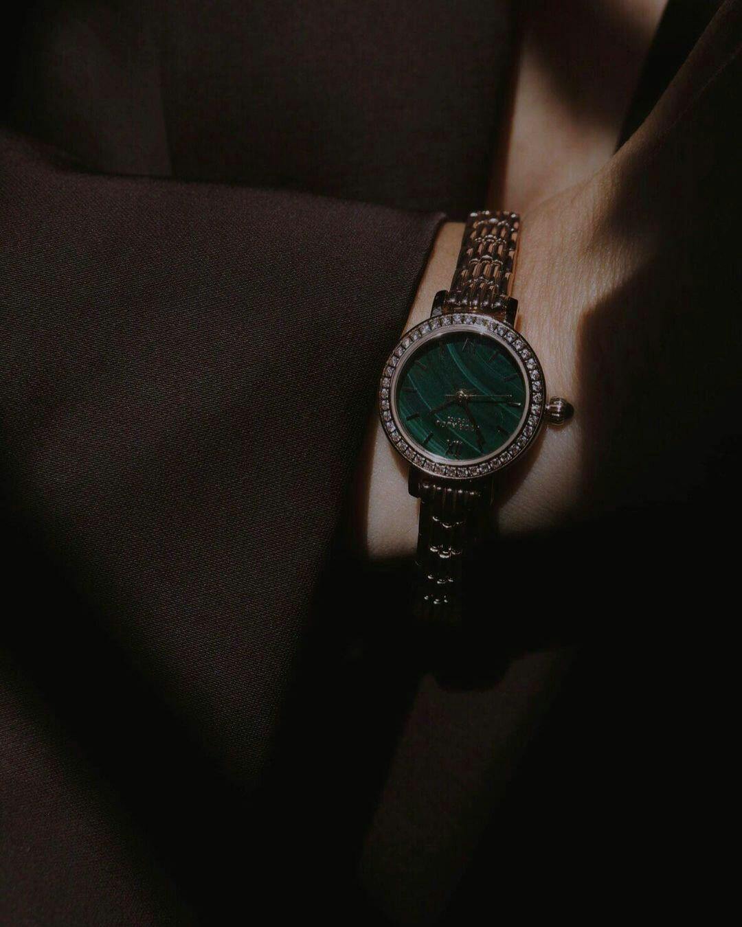 Malachite Watch With Zircon