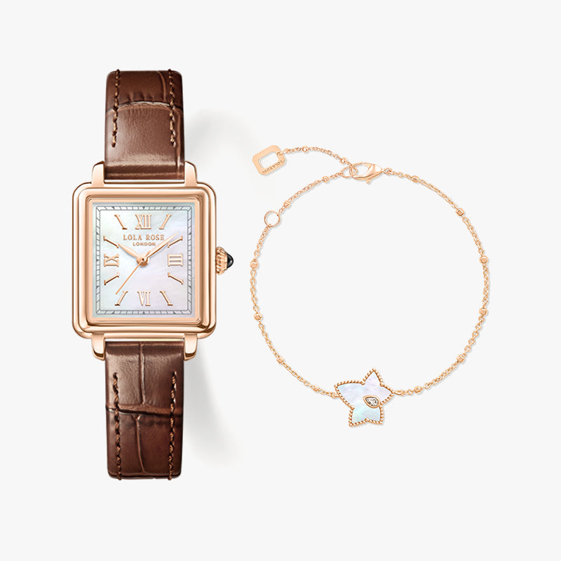Cube Mother of Pearl Watch & Bead Bracelet Gift Set