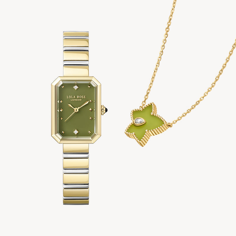 Ms. Lola Green Onyx Watch & Ivy Bead Necklace Gift Set