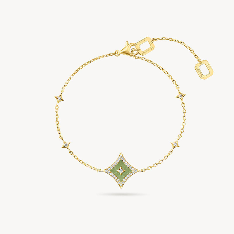 The design echoes the cathedral's celestial four-pointed stars, merging sacred geometry with modern elegance. Crafted with aventurine, known for its calming energy, each piece becomes a personal guide, much like the stars that light our way in the night sky.
