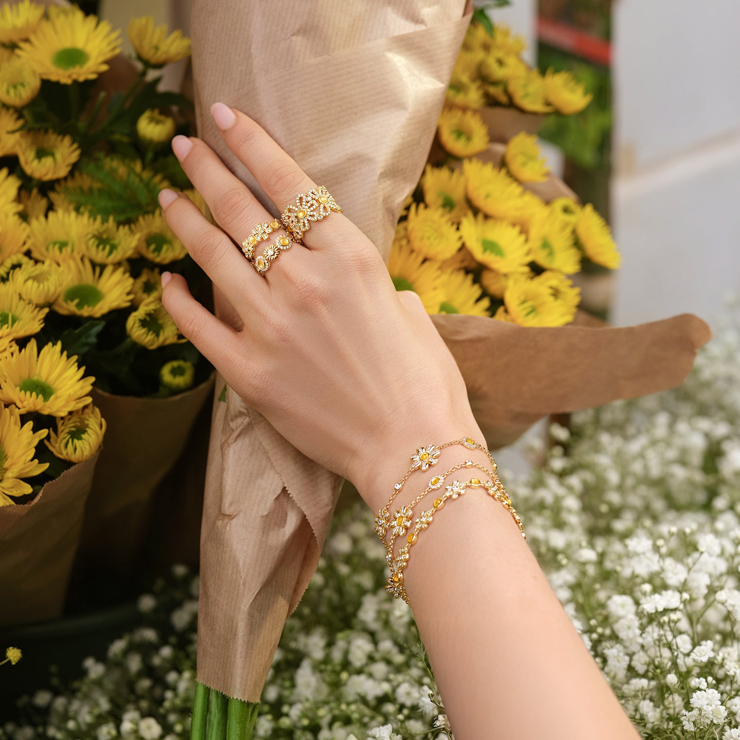 Daisy Wide Band Ring