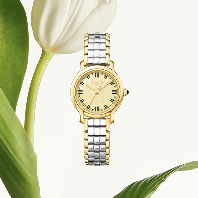 Step into the timeless elegance of the Waltz Collection by Lola Rose. Inspired by the grace and sophistication of old-world ballrooms, this collection transforms the beauty of dance and melody into an exquisite design. The sleek, flowing curves of the case mimic the fluidity of waltz steps, while the staggered indices echo the rhythm of a musical score.