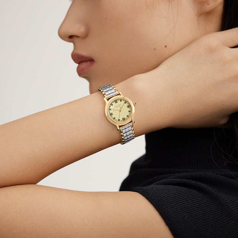 At the heart of this timepiece lies a unique low-saturation white onyx dial, exuding a soft, understated luxury. This delicate masterpiece is complemented by an elegant five-link bracelet in a refined blend of gold and silver, offering a harmonious contrast. With every passing second, the hands perform a graceful dance on your wrist, evoking a sense of freedom, romance, and self-expression. In the fast-paced rhythm of modern life, the Waltz Collection invites you to embrace elegance, move with poise, and waltz through life with effortless charm.