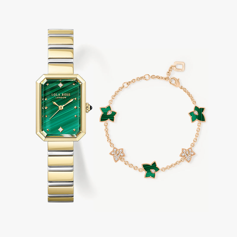 New Ms. Lola Malachite Watch with Quick-Release Strap & Bracelet Gift Set