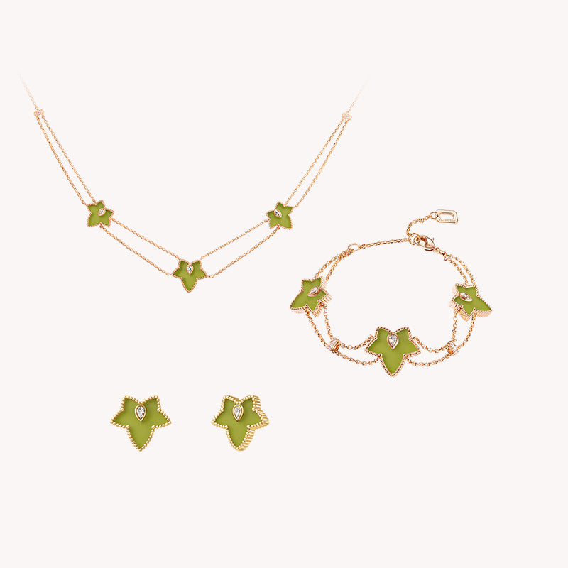 The Ivy Collection, steeped in the rich heritage of classic British style, draws its inspiration from the timeless elegance of ivy adorning grand British manors. This exquisite necklace, with its poetic and vivid ivy leaf design, beautifully complements the refined grace of the modern woman.